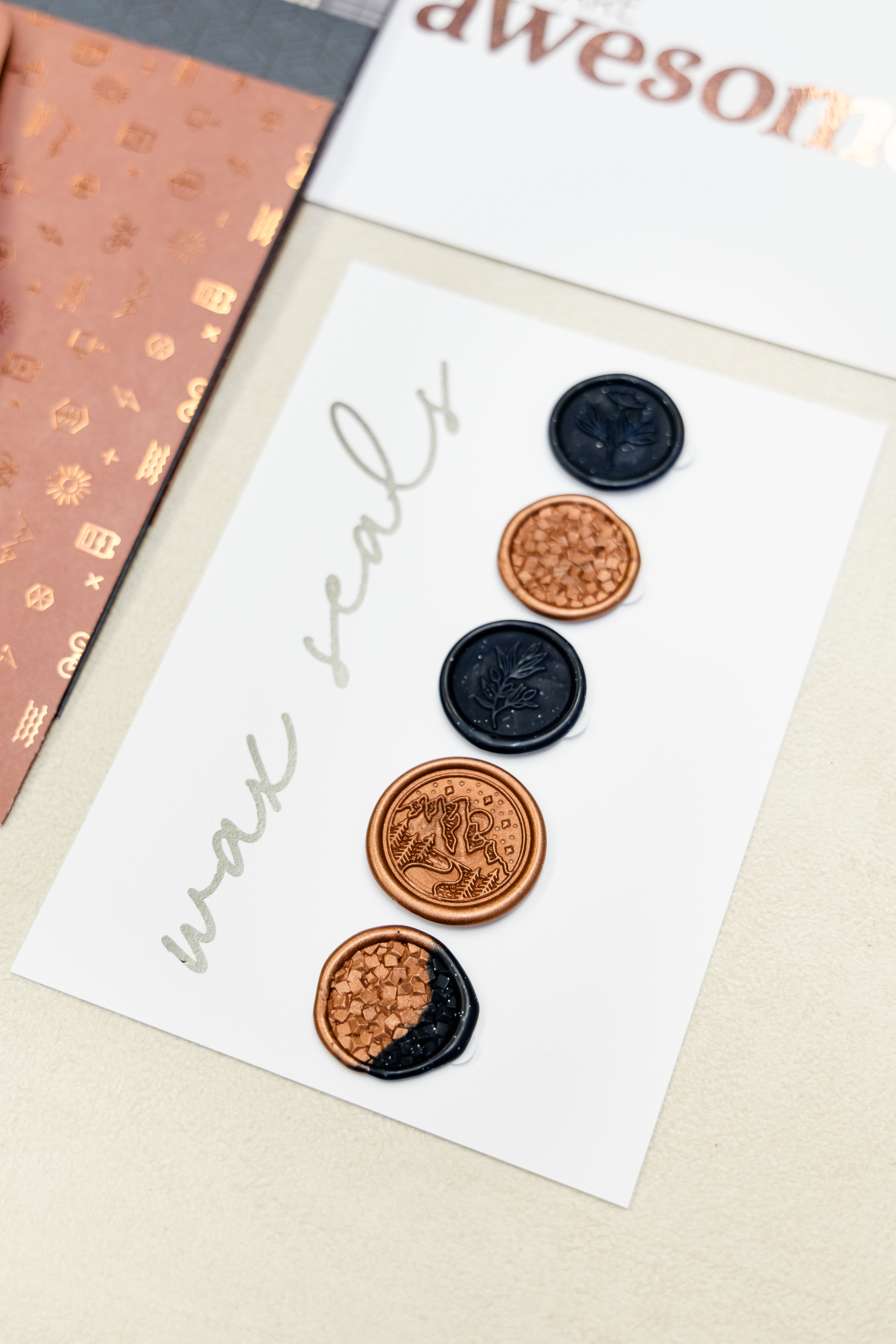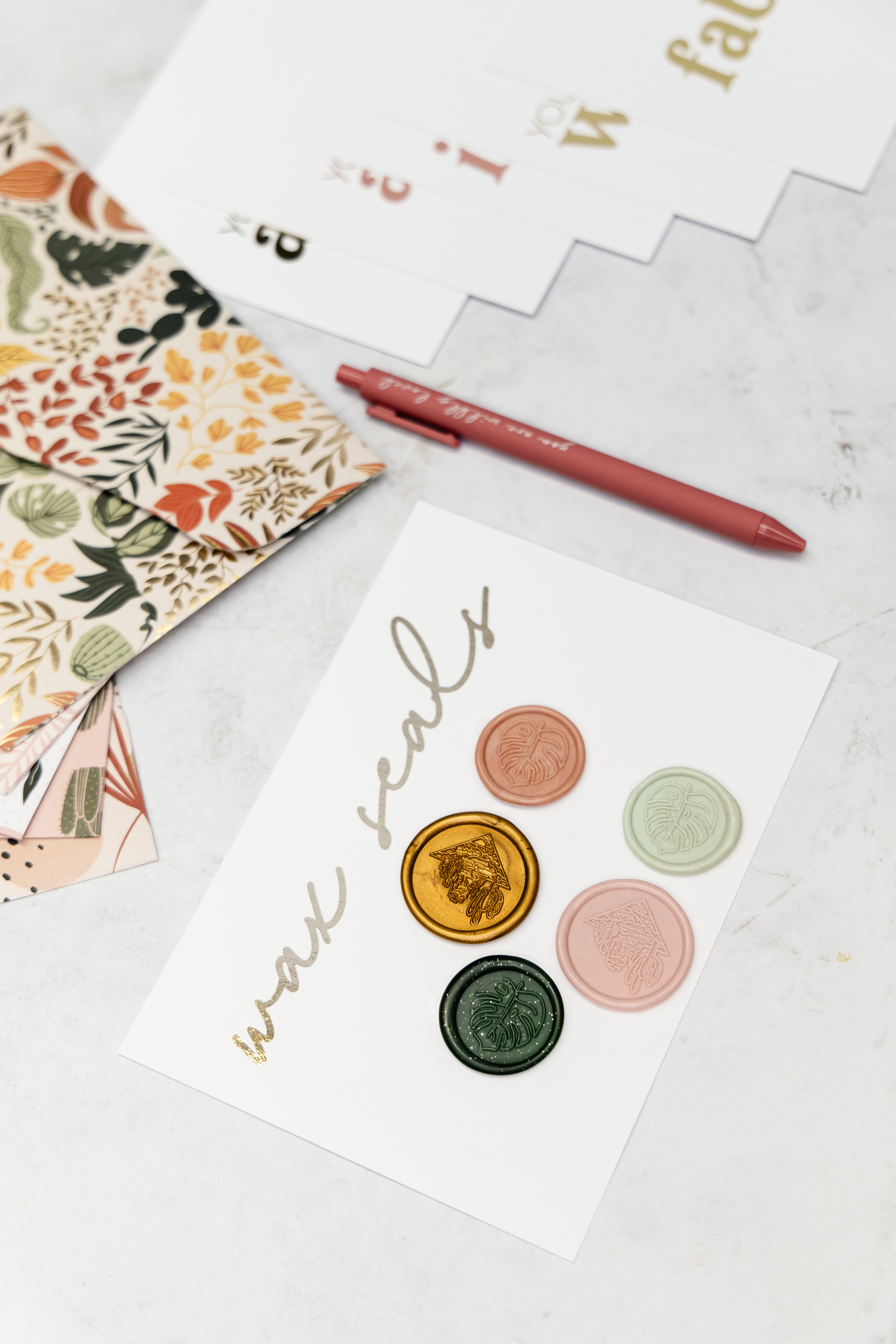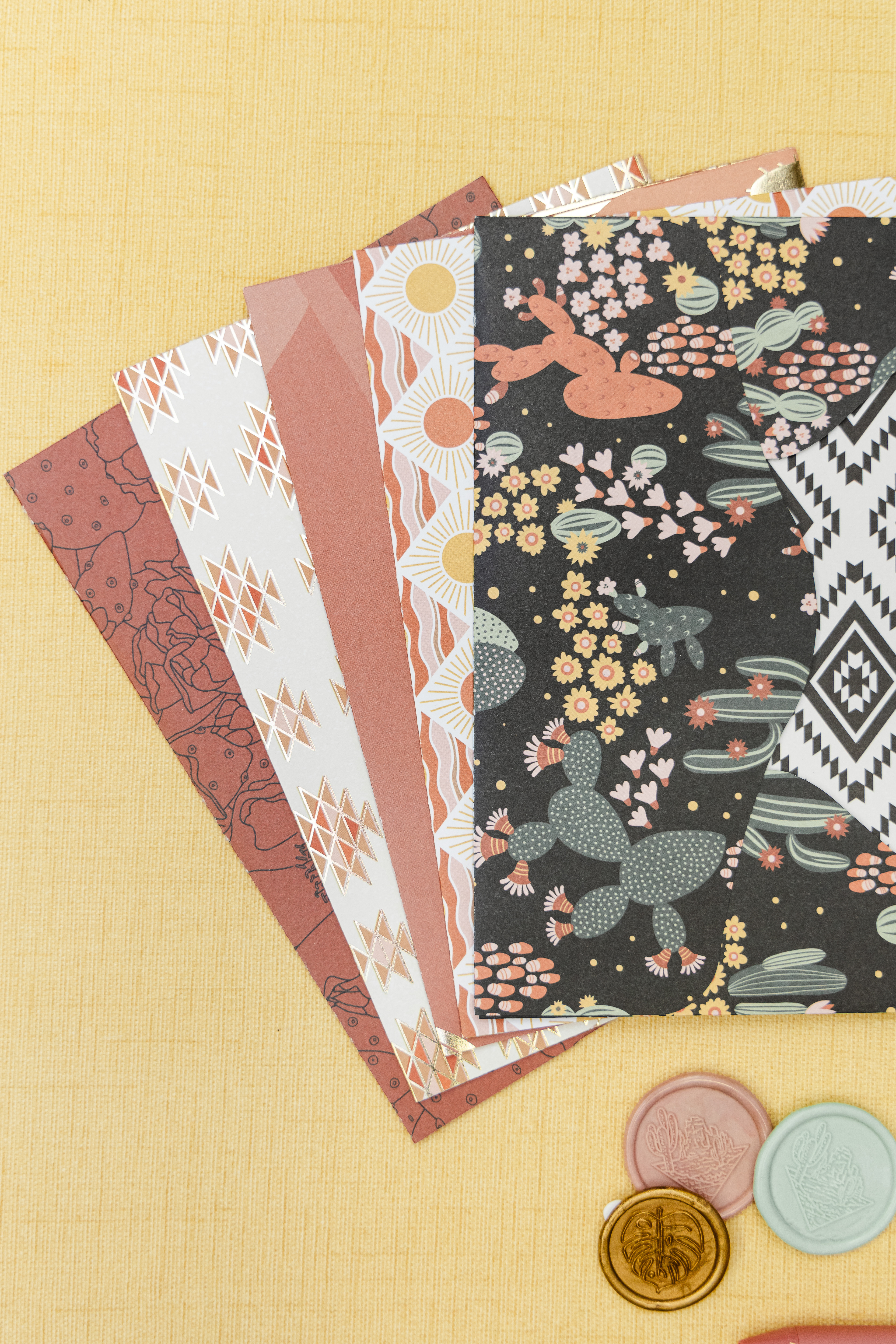 Handcrafted Envelopes with single-side foiled cards & wax seals
